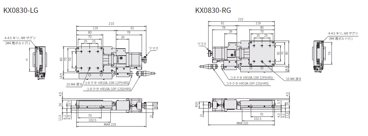 ステージ面サイズ:80×80mm仕様時は、型式「KX08~」となります。