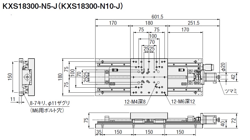 X軸スライドガイド:KXS18300