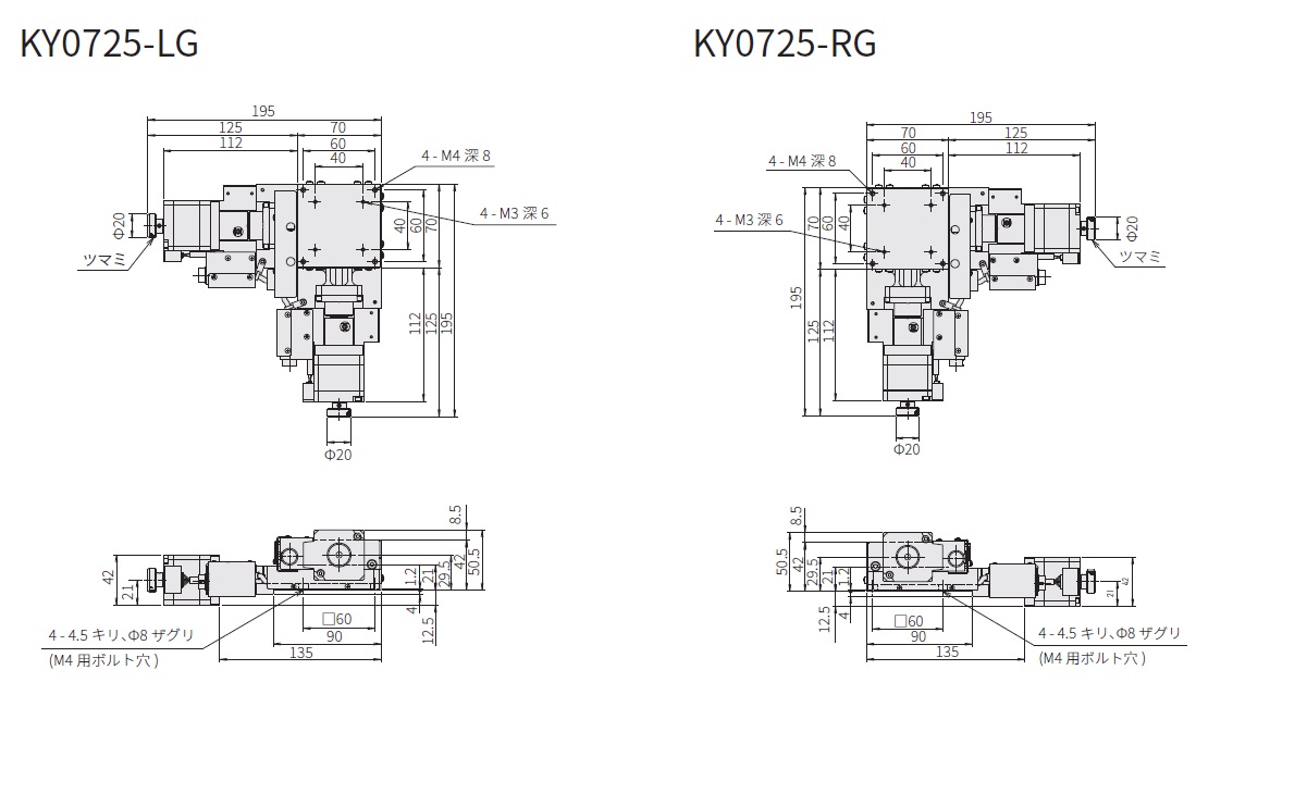 XY軸クロスローラガイド:KY0725