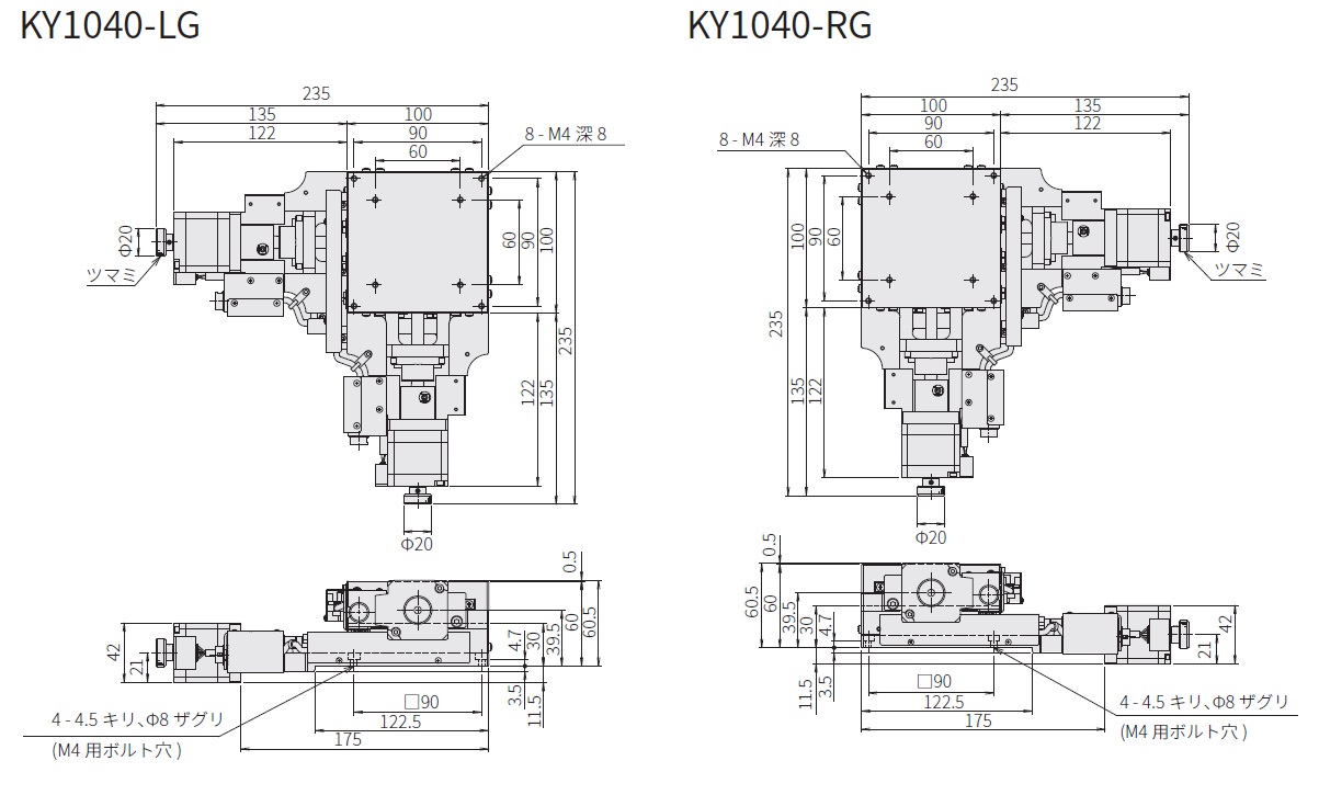 ステージ面サイズ:100×100mm仕様時は、型式「KY10~」となります。
